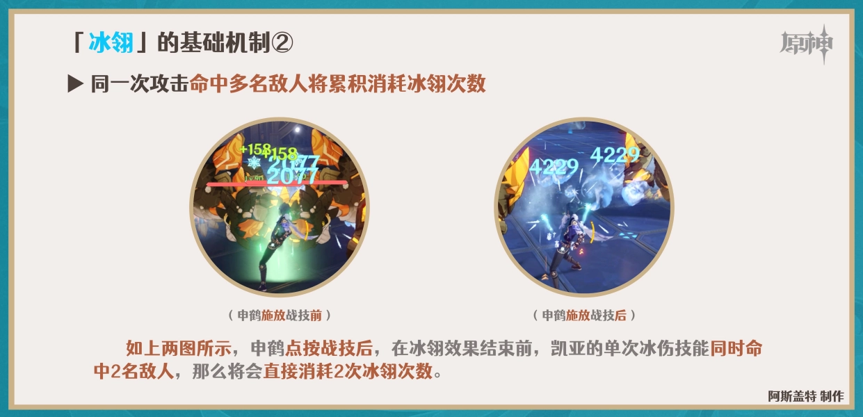 ②.同一次攻击命中多名敌人将累积消耗冰翎次数