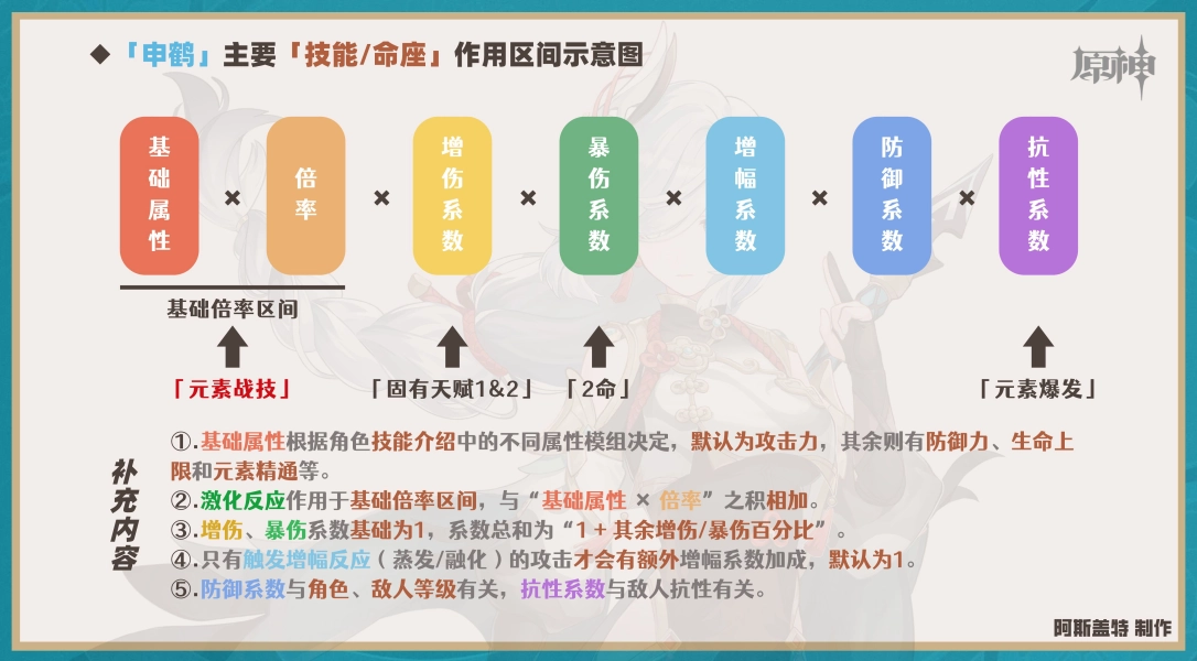 ①.申鹤的元素战技作用于“基础倍率区间”,其效果与云堇元素爆发的增幅机制类似(伤害结算可见下方【拓展内容】)。
