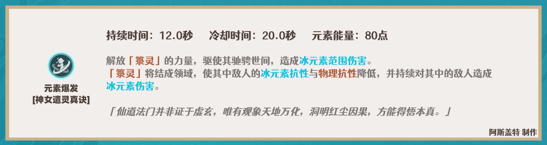 ②.其元素战技的伤害结算方式可以查看下方的“冰翎伤害结算”内容。