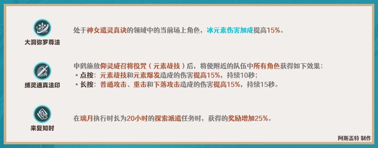 ④.该技能根据申鹤当前的总攻击力实时结算,不具有锁面板机制。