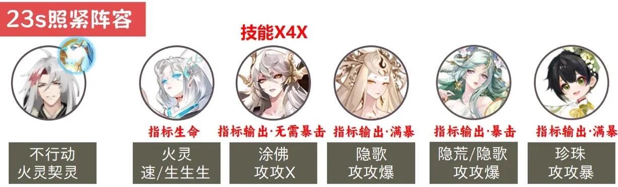 祸津神+天照+瑶音紧那罗+龙吟铃鹿御前+缈念萤草(X指属性任意)