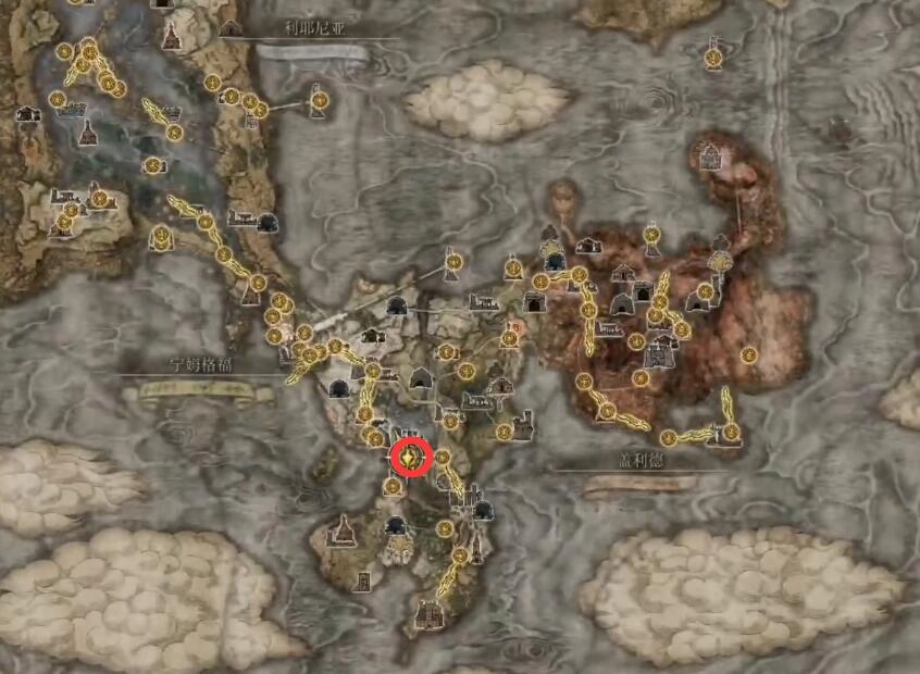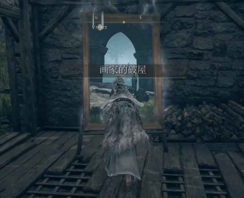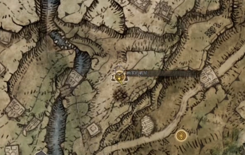 在宁姆格福地区,有一处画家破屋的赐福点,具体位置可参照上图所示。只要找到这个赐福点,就能在屋内找到归巢绘画。