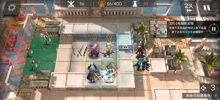 接下来要留意,如果需要补充输出的话,建议现在就安排干员上场。需要注意的是,踩独轮车的怪物会默认攻击最后上场的两名干员,所以得把能承受伤害的干员放在最后两个位置。
