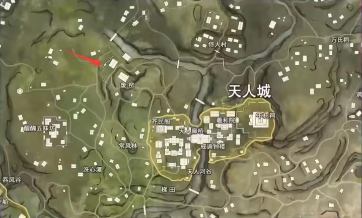 在天人城的左上角有个名为废窑的野点,这里设有三个大仓库,屋内摆放着不少木箱与瓶罐,敲碎这些瓶罐有机会得到柳枝;此外,废窑周边会固定刷新一些绿堆和金堆,从中有可能获取迎春礼包,因此十分推荐大家来此处刷取资源。