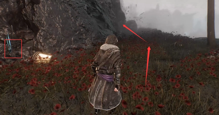 进来后,左手边有个符纹,你可以先收集起来,然后走右边的悬崖通道继续往前。