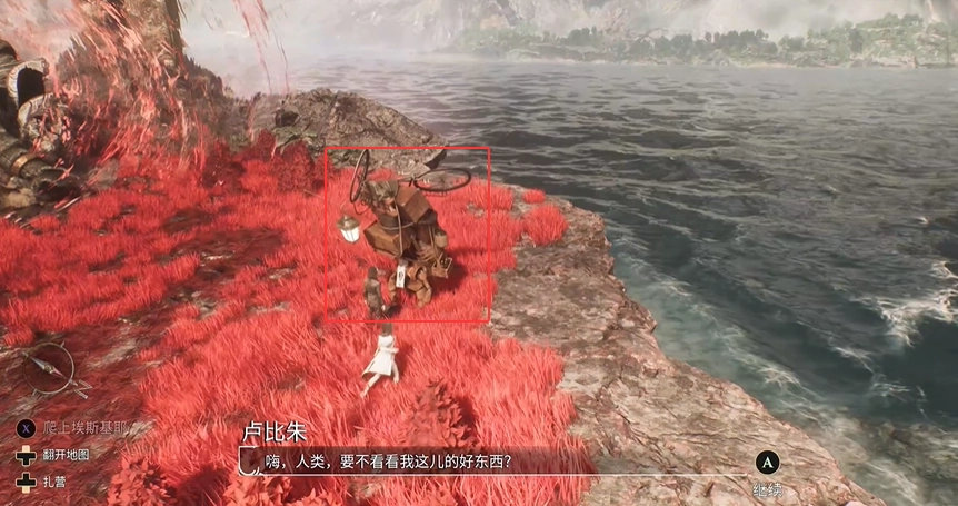 登上岛屿后,你就能看到这里的商人卢比朱。