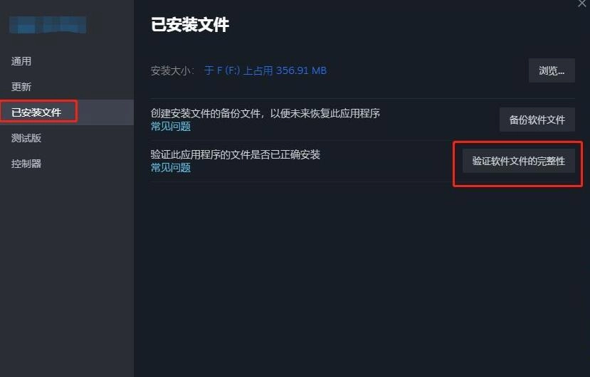 2、找到【已安装文件】选项,接着点击【验证游戏文件的完整性】按钮。