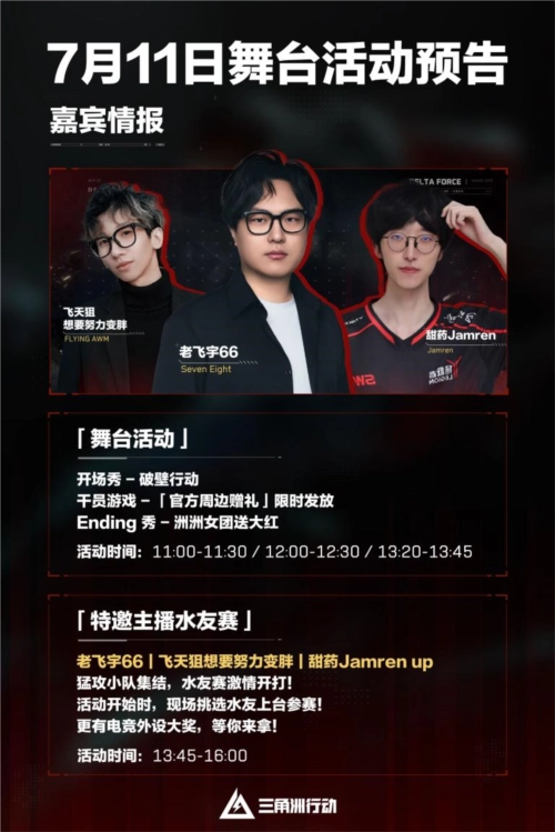 7月11日猛攻小队即将集结完毕!老飞宇66、甜药Jamren、飞天狙三位实力选手组队亮相,线下水友赛即将火热开启!这场精彩对决将在当天13:45正式打响,一直持续到16:00。参与互动还能赢取丰厚电竞大奖,机会难得,快来集结挑战猛攻小队吧!