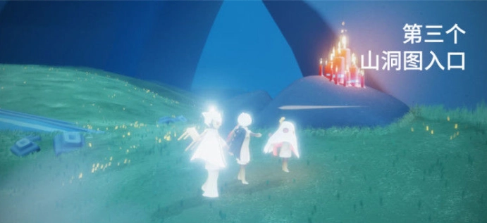 第三个大蜡烛的位置在云野山洞的入口处,玩家到这里就能看到第三堆大蜡烛。