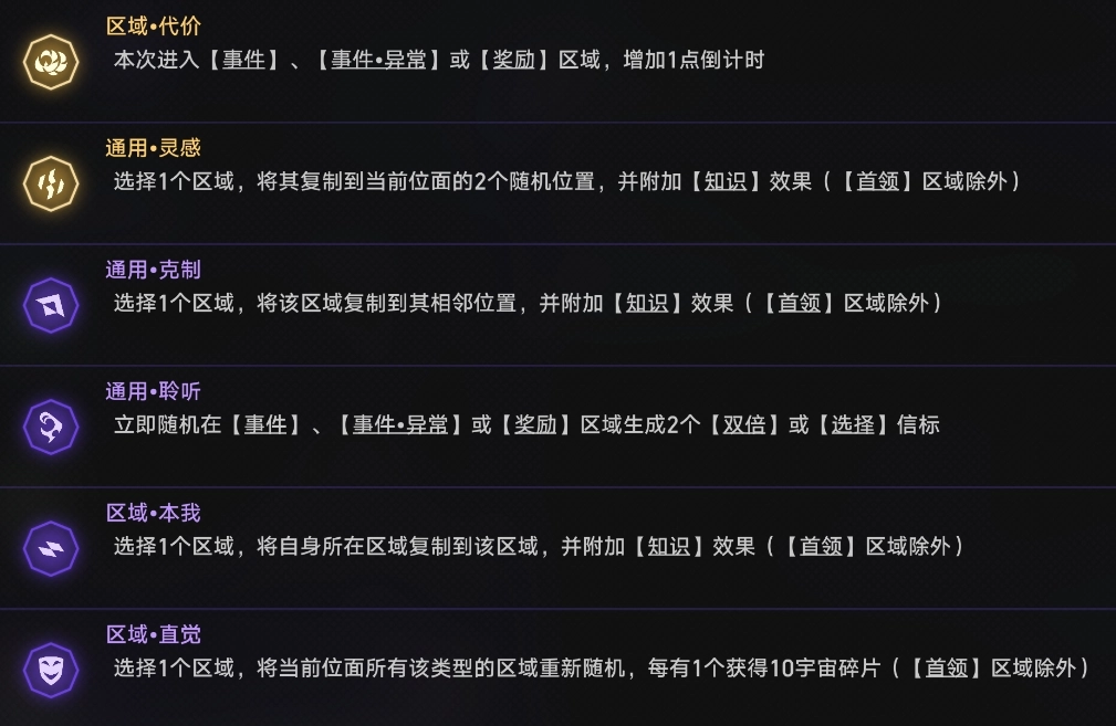 3.区域·直觉:这个很看运气,刷新同一类型区域时,想要的不一定能刷出来,优先级中等(至少我刷了十几把基本没刷出来几次,运气好的话可以用)