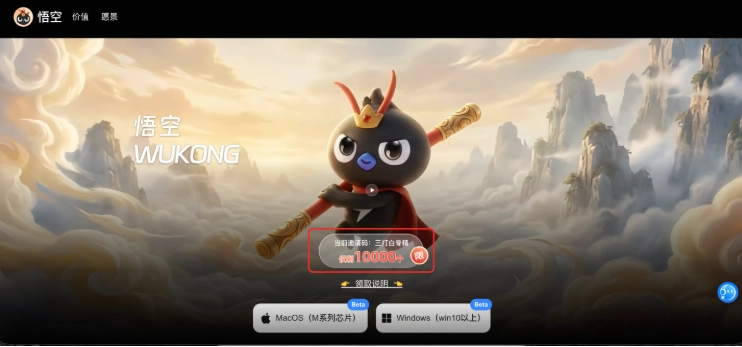 「悟空」官网首屏会定期更新“邀请码”,大家可前往官网查看,该“邀请码”会更新在官网首页的下方区域。