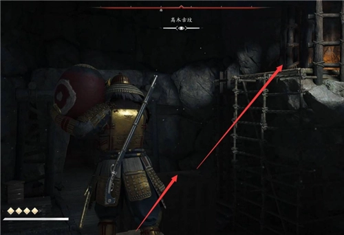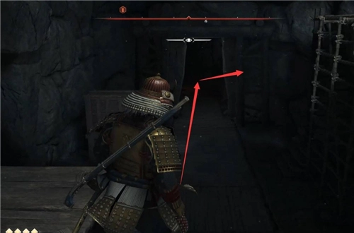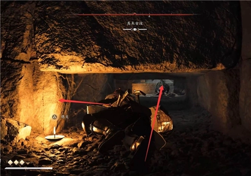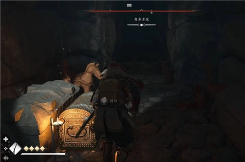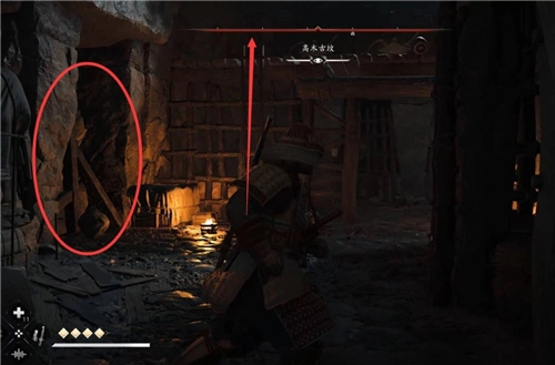 前方有几个强盗,留意狭道右侧有灯和尸体的位置,那里有面墙壁能炸开,进去后有个小宝箱。解决掉前方的强盗就能获得炸药。