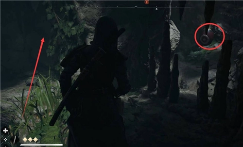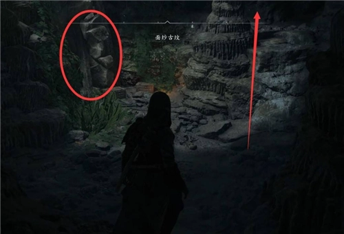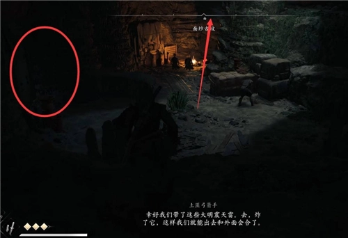 左边的路被石头堵住了,从右侧上去有个洞口,通过这个洞口发射炸药,被石头堵住的路就能被炸开通了。