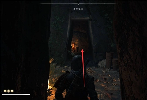 篝火旁边有可以补充道具的地方,记得多带些飞镖,之后继续往前走。