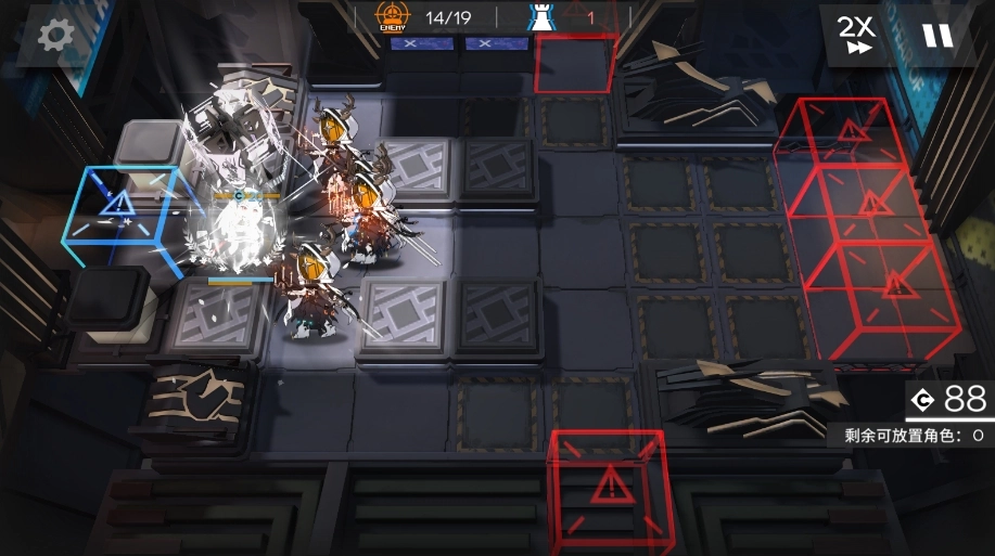 泥岩携带三技能部署在家门口,这个技能总共需要释放两次。第一次释放的时机得留意,不然很容易因为漏怪而失败,建议等大量敌人朝门口移动时再开启技能。