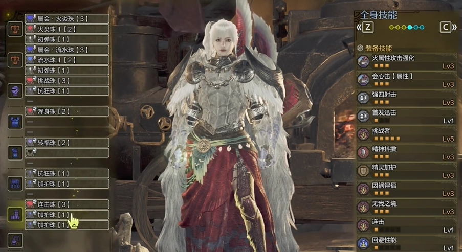 武器的珠子建议优先把属性会心、属性强化和强四射击这几项堆满,最后再考虑首发迅击或者格挡强化。