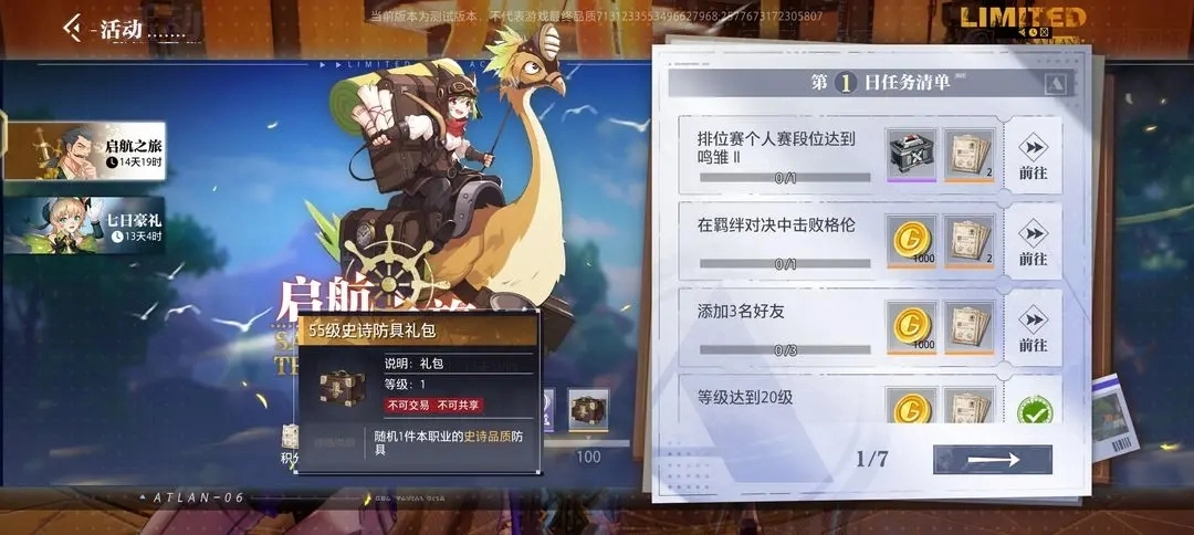 每位新玩家均可参与启航之旅活动,该活动的终极奖励为一件本职业55级史诗品质的防具。