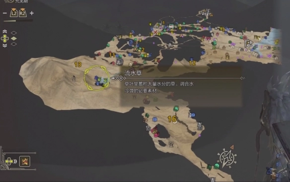打开天堑沙原的地图,我们要前往区域13周边的流水草所在地,沙野流星仅会在丰饶期的夜间出现。
