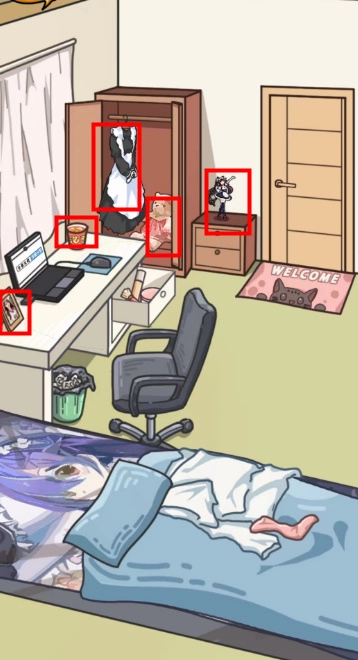 1,首先是进入后需要看到里面不能让女友知道的物品,那么就得先把这些物品都找出来才行。