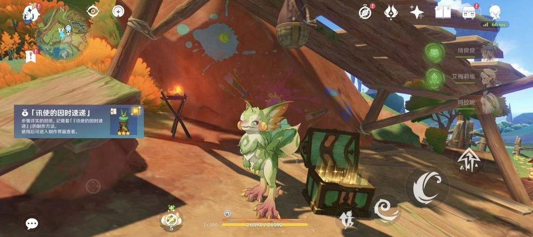 「踞石山中的悬桩」:顺着大陆行进到愚人众的聚集地,再往里面走。打开门后沿着道路前行就能看到了。