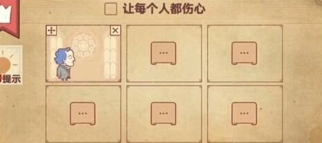 6、最后在下方第一个框内放入复活的黄发女生,第五个框内放入复活的黄发女生与墓碑中的男生,黄发女生会心碎。