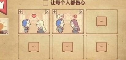 4、接着把男生与红发女生放置到上方中间的框里,此时红发女生会心碎。