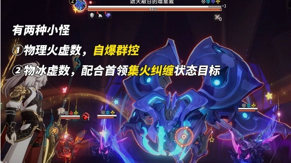 ②建议携带具备解控、免控或提升抗性能力的角色。碎星王虫的行动速度不算快,不过它每次行动时,都有很高概率对我方单个角色施加纠缠控制效果。比较推荐的角色有灵砂、砂金、加拉赫、藿藿、符玄、星期日、布洛妮娅等;要是没有这些角色,也可以选择buff2来提升50%的效果抵抗。