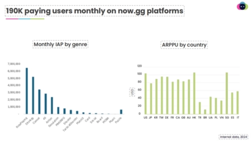 作为全球规模领先的游戏分发平台,其市场地位仅次于Google Play与Apple Store两大巨头。Now.gg平台每月付费用户规模约达19万,在角色扮演、策略、休闲等多元品类的应用内购买领域,均实现了百万美元级别的收入。与行业内其他平台相比,Now.gg的核心优势在于突出的技术实力:一方面具备一站式集成的便捷分发体系,另一方面其云端功能支持玩家通过一条嵌入式URL,无需下载即可直接体验云端游戏,这一创新模式在实际应用与市场传播中均取得了显著成效。