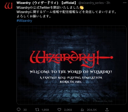 2020年10月,日本游戏公司Drecom完成了对《巫术》(Wizardry)国内外所有商标的收购。如今,该公司突然开通了官方推特账号,这似乎暗示着他们可能计划重启这一经典IP,后续动态值得关注。