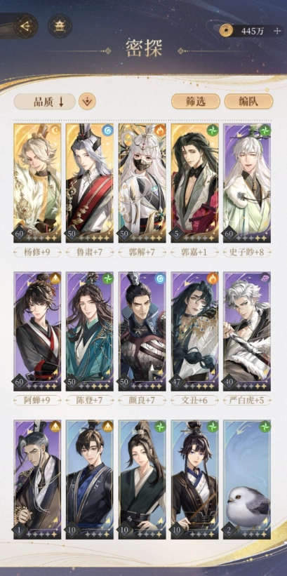杨修(队长)、阿婵、颜良、郭解、狮子喵。