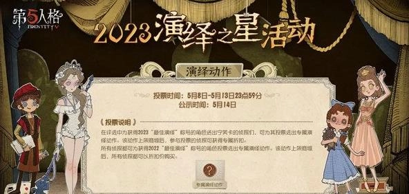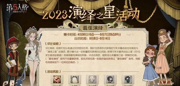 第五人格2023演绎之星活动的开启时间是什么时候?相信不少小伙伴已经迫不及待想知道了,下面就让小编为大家介绍一下吧。