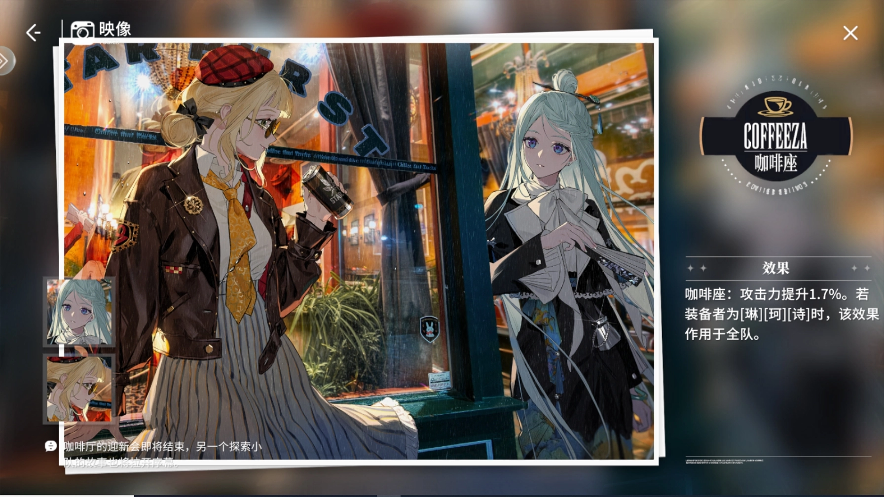 初级效果:攻击力提高1.7%。当装备者是[琳][珂][诗]时,此效果将对全队生效。