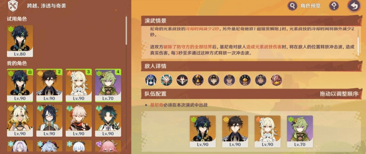 可以先确定基尼奇,之后搭配1个穿戴勇者套的角色,再加上1个能吃勇者套效果的辅助或挂草角色就行(像钟离、柯莱这类都可以)