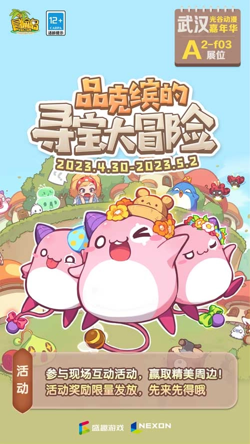 武汉的玩家们注意啦!冒险岛将在五一小长假(4月30日至5月2日)亮相江城武汉洪山区高新大道787号中国光谷科技会展中心举办的光谷动漫嘉年华!展位设在A2-F03!现场主题活动“品克缤的寻宝大冒险”期待你的参与!完成现场任务,即可获得加入深渊远征队的资格!参与互动,还有机会赢取游戏精美周边!快来和冒险岛一起欢乐度五一吧!