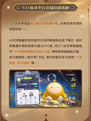 另外,S21派对季盲盒首次推出双隐藏外观,并将迎来全新抽取机制,具体可戳下图了解。