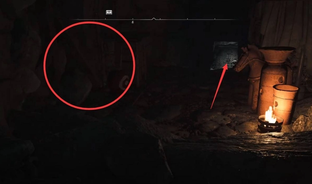 过来后先把炸药放下,射爆下方右侧的炸药,进去拿个小宝箱。