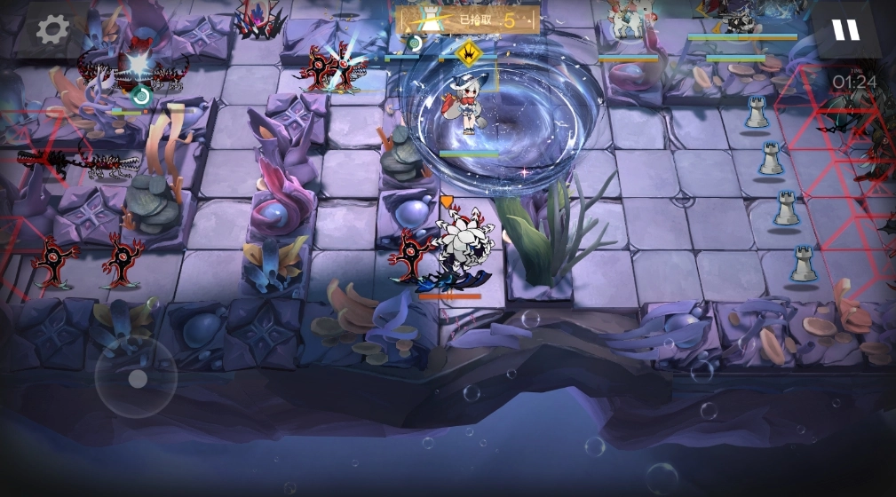 这里建议等歌蕾蒂娅的技能结束,并且有两个怪物在蒂蒂所在位置时再过去。蒂蒂是挡一类型,只要能阻挡住怪物就行,但要注意蒂蒂身后是坑,很容易掉下去。