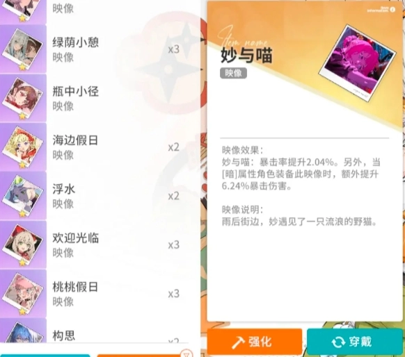 建议优先选择高星级的SR映像。满破状态下的SR映像,一般能带来7.5%到17%上下的伤害类型加成;相比之下,1星SSR仅提供约6%的伤害类型加成,不过会附带一些额外特效。