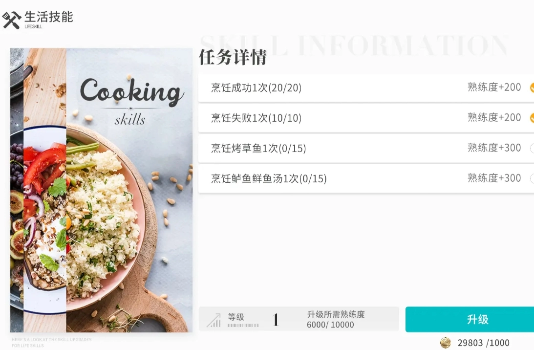 生活里的各项技能彼此间存在关联,就拿料理和钓鱼来说,在提升料理等级的过程中,料理任务常常会要求制作各类不同的菜肴,其中很多食材都得通过钓鱼来获取。钓鱼等级提高会降低低级渔获的出现概率,但有些料理又需要用到低级渔获,所以大家不用急着提升钓鱼等级,等料理等级需要高级渔获时,再同步提升钓鱼等级就可以了。