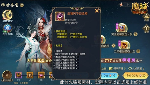 11月12日到11月25日期间,神选者们能够参与「稀世夺宝」主题活动,赢取庄雅风华时装箱、知己时装自选箱、背饰·鎏金蝶舞、4阶4洞极品箱等珍贵奖励。当参与次数分别达到58次、88次、188次时,还可以额外得到家园筹码币、双人动作、桃源自选好礼。