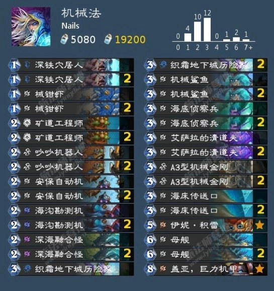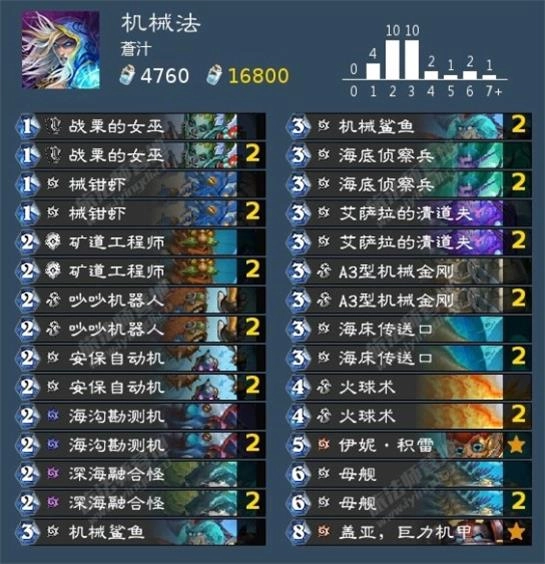 机械法卡组在预览季里热度颇高,整体节奏相当稳健,还拥有像机械鲨鱼这样的强力单卡。鉴于当前卡池较浅,抽到机械鲨鱼的概率不小,所以它在后期也具备一战的能力。