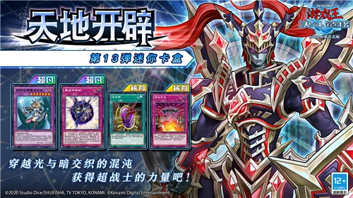 由日本KONAMI研发、网易游戏独家代理的《游戏王:决斗链接》第13弹迷你卡盒《天地开辟》将于4月20日震撼登场!本次卡盒为《游戏王》主角“暗游戏”的经典卡组「混沌战士」与「黑魔术师」系列注入了全新能量。此外,还收录了能在各类卡组中广泛运用的「强化苏生」和「龙之镜」两张卡牌。现在登录游戏就能领取500宝石,快登录游戏获取超战士的强大力量吧!