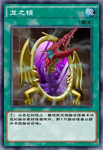 「龙之镜」可以把场上·墓地将龙族融合怪兽所需要的融合素材怪兽除外,融合召唤一只龙族融合怪兽,给龙族卡组赋予了快速做出强力龙族融合怪兽的能力。