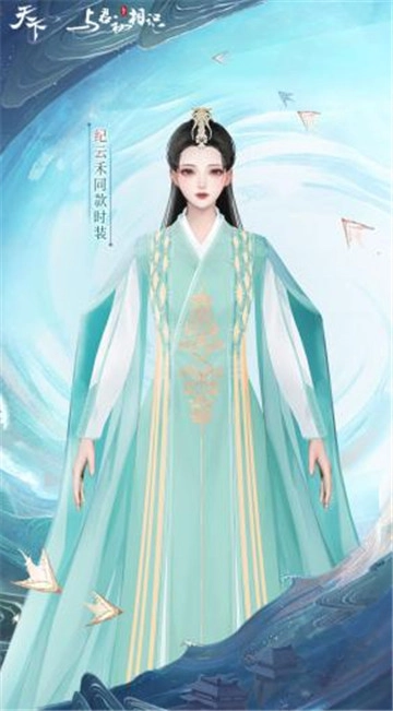 青衫烟雨客,似是故人来。纪云禾同款时装以素白为内衬,外罩翠色长衫,肩头垂落两束金色丝绦,胸前暗金花纹精致繁复,流转着熠熠光华。随风轻摆的轻纱下摆,更添仙气飘逸,又不失清纯可人。