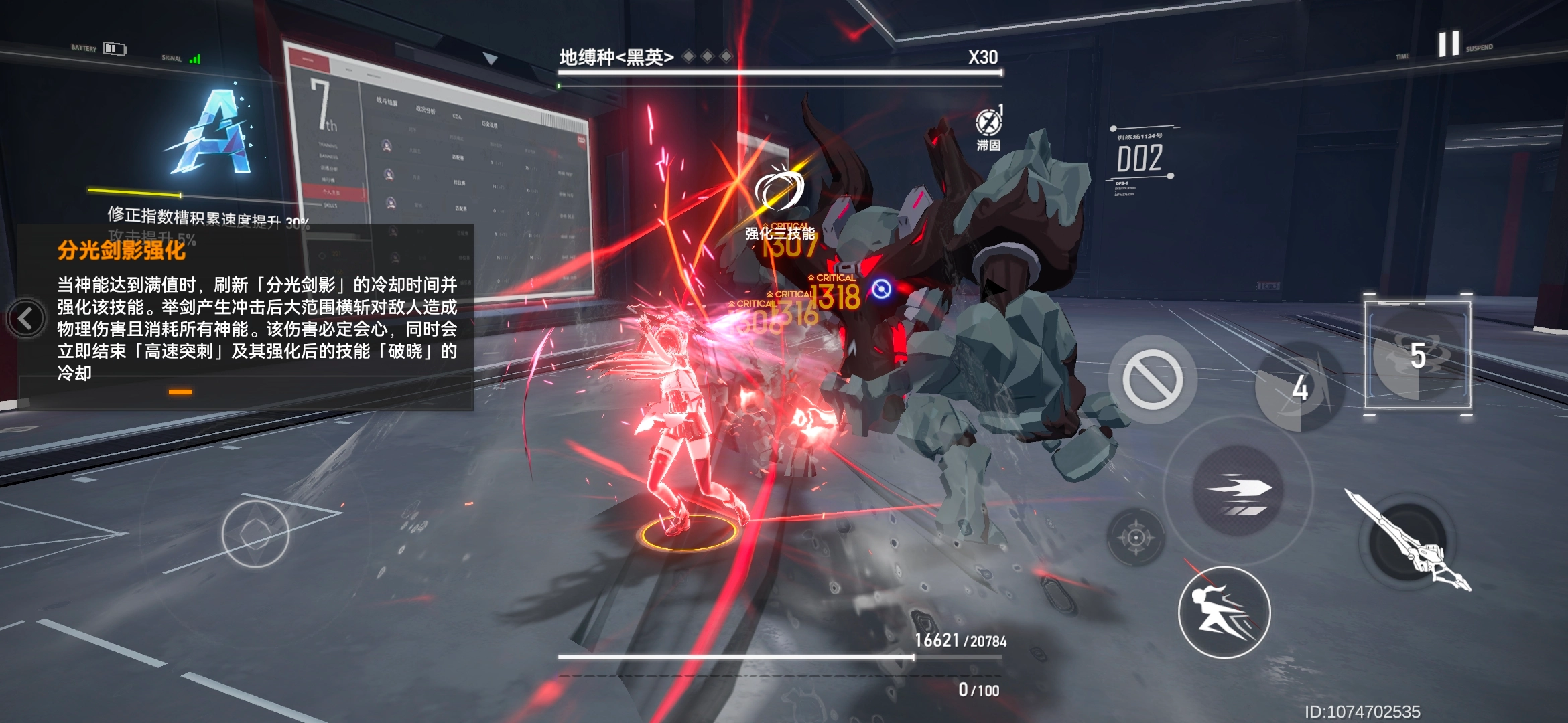 三技能“分光剑影”在对敌人造成伤害的同时,能够重置一技能;当神能值达到100时,该技能会强化为“逐光落影”。