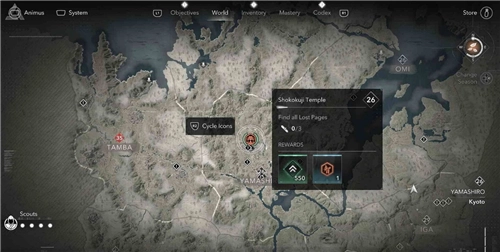 这就为大家介绍《刺客信条》影山城区域内相国寺的失落卷页收集地点。相国寺地处京都,该区域总计分布着3个失落的卷页。