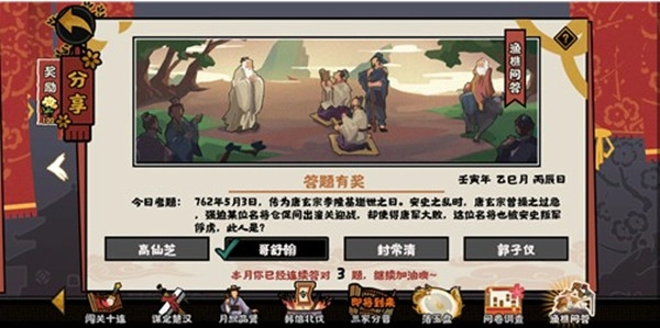无悔华夏渔樵问答5月3日的问题答案是什么?无悔华夏渔樵问答5.3的问题是一道关于唐朝的历史题目,不少玩家还不太确定答案,下面就为大家带来无悔华夏渔樵问答5月3日问题答案的相关说明。
