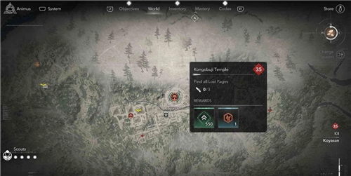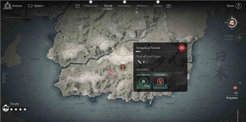 下面为大家介绍《刺客信条:影》中纪伊地区金刚峰寺的失落卷页收集位置,金刚峰寺坐落在高野山,该区域共有3个失落的卷页。