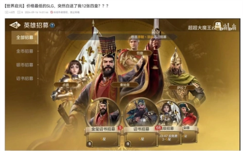 同样感到震惊的,还有SLG游戏领域的各大KOL。B站UP主“超超大魔王zZ”拥有数万粉丝,被称作“SLG游戏超级大R”“著名硬核SLG玩家”“联盟盟主”,便是其中一员。为了核实这次福利的真实性,他特意制作了一期详细的抽卡视频来亲身验证。视频里,他亲自全面展示了新增抽卡机制的各项细节,并用六张金玺诏书达成了期待已久的四圣卡“全面红”成就,之后他和屏幕前的玩家们,都被《世界启元》官方“一切为了玩家”的敬业态度深深打动。