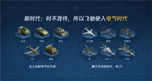 在S2新赛季中,《世界启元》的世界进程,将进一步推进到“电气时代”,玩家也将能够真正意义上,体验到游戏中“现代战争”的魅力。其中除了包括坦克、装甲车等在内的更多现代化兵种的解锁外,随着“天空”这一地图维度对玩家的正式开放,各种飞行单位也将会为战场局势,带来更多变幻莫测的因素。